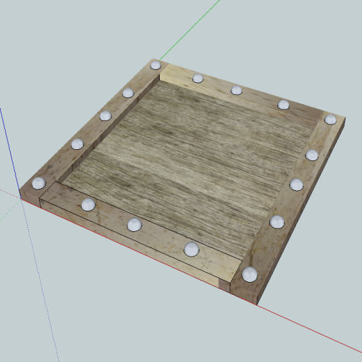 In Sketchup create a metre square plane, to make my model I used the offset tool to create the outer edge, drew lines so I had 4 outer beams and four planks, I selected each section in turn and made it a group,